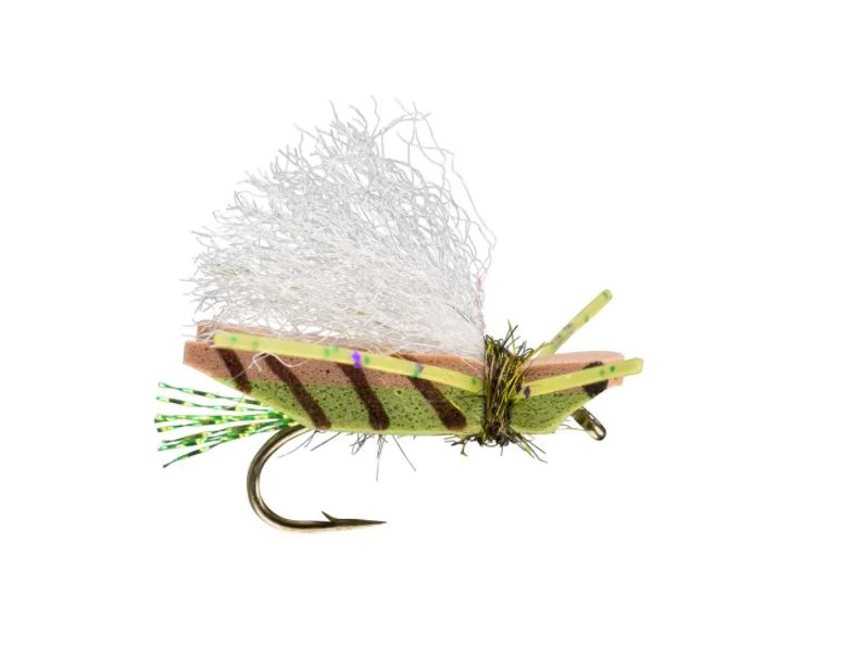 This bad boy has a wide platform that makes a beautiful splat when hammering grassy banks. The white poly wing is easy for the angler to see, and the thick, two-tone foam body has plenty of buoyancy to suspend your favorite dropper.